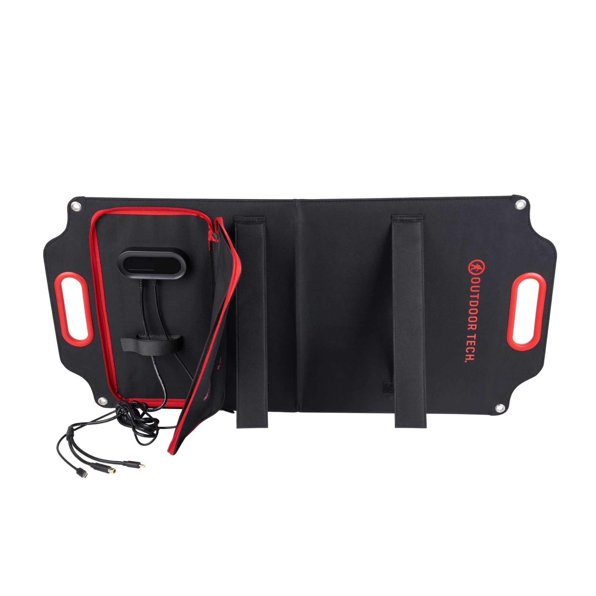 You're an adventure junkie who needs to stay in charge in the great outdoors. Do it with DAWN – a compact, packable 40W/18V solar panel that plays nice with every charging cable in the Outdoor Tech lineup. We engineered it with a kickstand for ideal angled placement under the sun, and with an integrated LCD display to show how much power your device is getting. DAWN keeps you connected in nature.