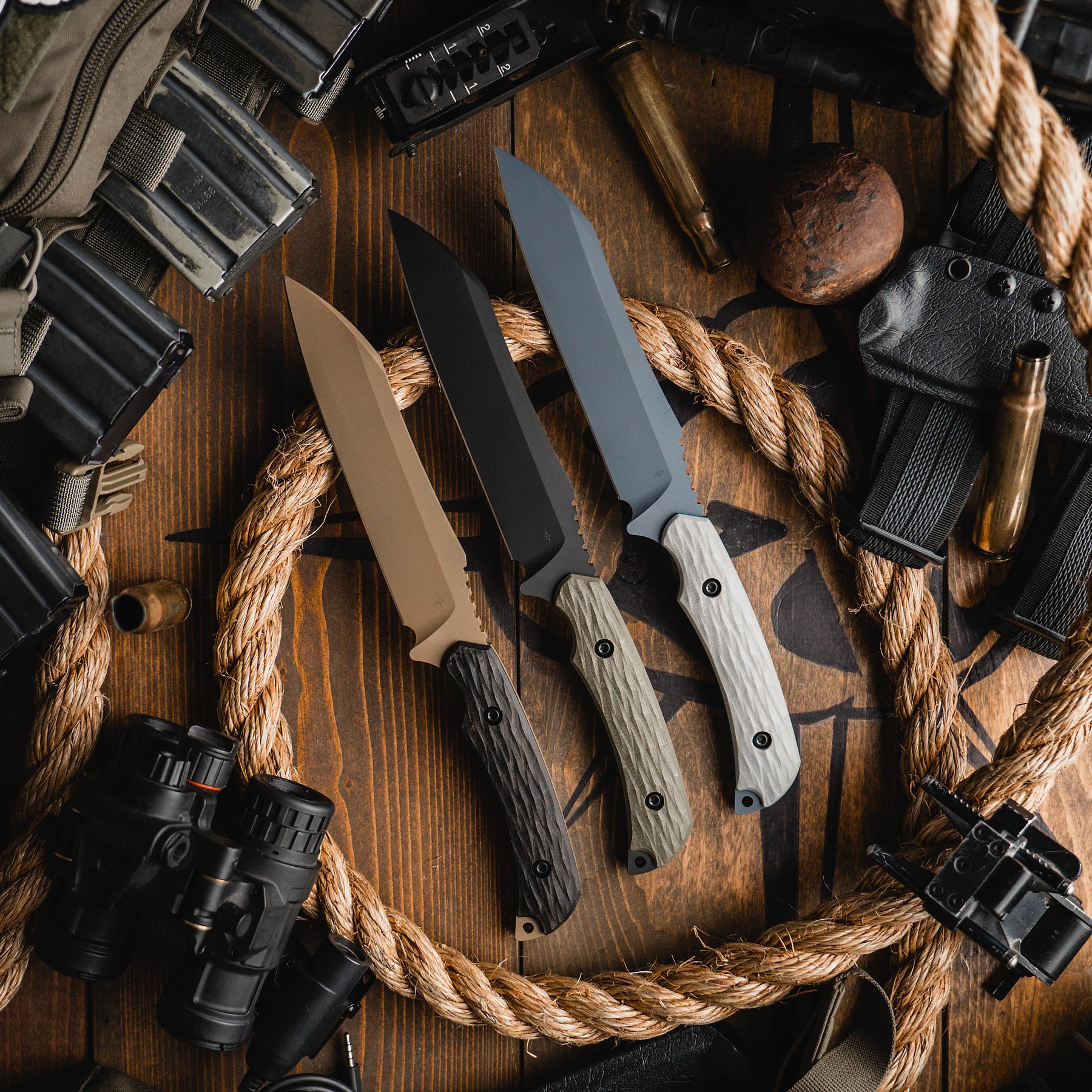 Another iconic knife that combines Toor’s premium bladesmithing capabilities with Skallywag’s combative and application competence, the Limited Edition Fathom was designed and built with precision and practicality to tackle jobs reserved for heavy blades. With an overall length of 11.5" and weight of 12.2 oz., the Fathom isn’t for Landlubbers! This unique, state-of-the-art knife combines aspects of traditional Wharncliffe, Sheepsfoot and Drop Point blade shapes and is made from D2 steel, which has high wear and abrasion resistant properties.