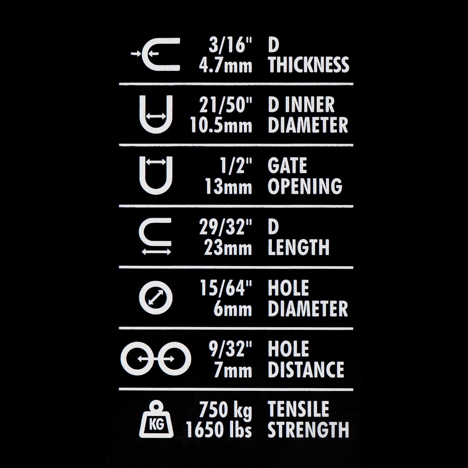 - CAN BE USED IN AN EMERGENCY – The TITAN D Shackles have a large gate opening of 1/2" (13mm) which makes attaching to the adjustment clasp, or other equipment very easy. In addition, this clasp can hold up to 1,650 lbs. in an emergency.